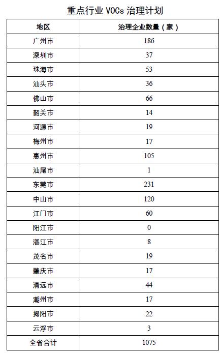 省環境保護廳于2018年5月底前出臺《廣東省揮發性有機物(VOCs)整治與減排工作方案》。各地級以上市按照省固定污染源VOCs監管系統要求全面開展排放調查,建立工業企業VOCs排放登記制度,建立并完善市級VOCs重點監管企業名錄,啟動重點監管企業VOCs在線監控系統安裝工作;完成重點行業VOCs綜合排放標準編制工作,開展火焰離子化監測(FID)在線監測技術規范前期研究。完成典型行業VOCs最佳可行技術案例篩選,設立治理示范項目,推廣最佳可行控制技術。實施VOCs總量控制,推動實施原輔材料替代工程,全面完成省級重點監管企業“一企一策”綜合整治并開展抽查評估;開展加油站、儲油庫、油罐車油氣回收治理專項檢查,加強對重點機動車維修企業的監管。重點行業VOCs治理計劃見附件5。