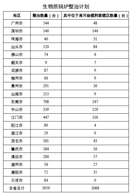 各地級以上市要加強對禁燃區內銷售、燃用高污染燃料行為的監管,未按要求重新發布高污染燃料禁燃區公告的韶關、東莞、中山、湛江、茂名等市要在2018年5月底前發布公告。全省于2018年年底前基本實現執行《高污染燃料目錄》Ⅲ類(嚴格)、Ⅱ(較嚴)區域民用燃燒設備無燃煤化,2019年6月底前完成高污染燃料禁燃區建設。